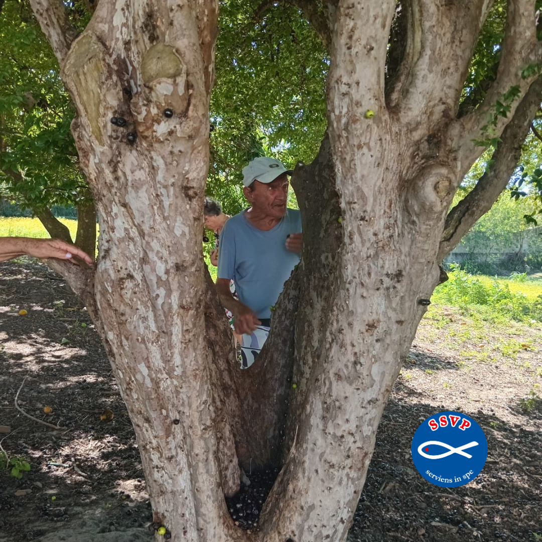 Na última quarta-feira, dia 19, nossos moradores participaram de uma sessão de exercícios físicos ao ar livre, conduzida por nossa fisioterapeuta e cuidadora, embaixo da jabuticabeira do nosso pomar.