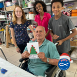Na última quinta-feira, 11/12, vivemos um momento especial no Lar dos Velhinhos São Vicente de Paulo de Capivari. As crianças Maria Fernanda (12 anos) e os irmãos Vitor e Vitória (11 anos) promoveram uma Oficina de Cartões de Natal com nossos moradores.