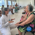 Tivemos também a colaboração voluntária da podóloga Fabiana Cucculi Faicari, que compartilhou orientações importantes sobre cuidados com pés e mãos, contribuindo para a saúde, prevenção e bem-estar dos residentes. Agradecemos imensamente sua disponibilidade e apoio ao nosso trabalho.